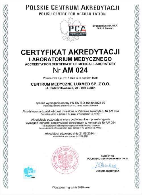 Akredytacja Laboratorium CM LUXMED